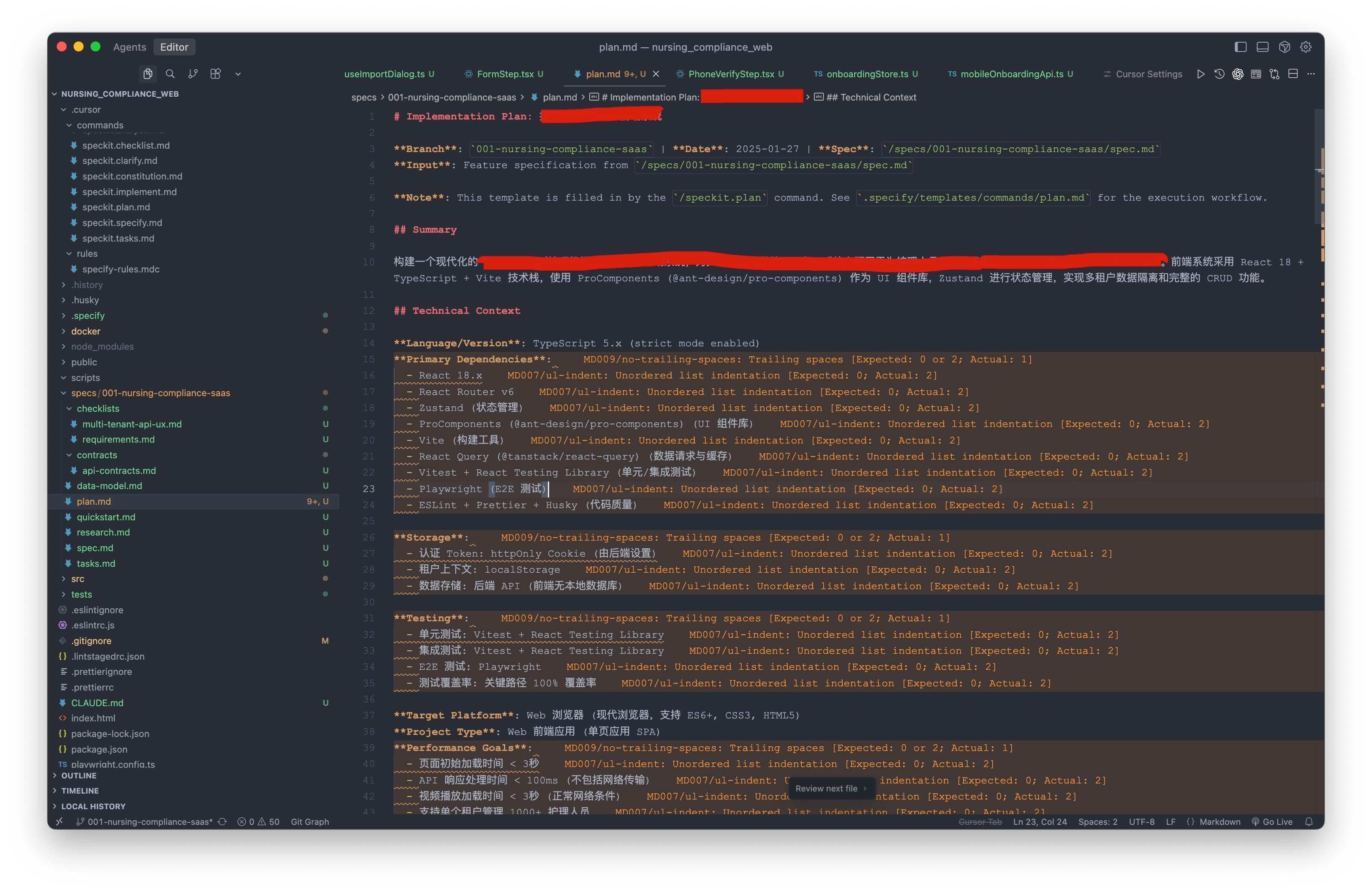 Spec-Driven Development 发表于 2025-11-07 分类于 AI Code AI Code Spec-kit https://github.com/github/spec-kit 我选用的Cursut-agent,我的建议是一定要按照官方的这几个命令顺序执,按顺序执行你才能真正体现这个工具的强大之处: 按顺序执行 生成结果 我个人觉得,从0到1开始一个项目,有这个是很省心的。 想的全面 代码结构化 使用得当不容易出现屎山代码